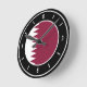 Relógio Redondo Elegante de Bandeira do Qatar com a bandeira do Qatar posicionada no meio e adoráveis números de relógio brancos na borda do relógio. O delicioso fundo preto com os elementos ovais brancos finaliza o design, colocando ênfase na elegância. A bela combinação de preto e branco com a hábil integração das cores da bandeira nacional faz deste relógio o presente perfeito e a peça do excelente na parede. © 2022 PaísesDoMundo