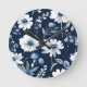 Relógio Redondo Bando de Flores Elegante Aquarela Azul