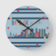 Relógio Redondo Banguecoque - Skyline Neon Orange Blue Wall Clock