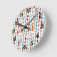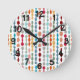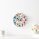 Este relógio de parede tem um médio de círculos e ovais modernos do século design unidos em cores retrógradas unidas num campo de branco.
