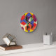 Este relógio tem um design Bauhaus de hexágonos sobrepostos de muitas cores.