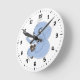 Relógio com design com ilustração de um elefante azul com um rato marrom; ilustrado por Radka Kavalcova / MaxiHarmony