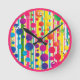 Uma design viva de bolhas bolinhas sobre listras num arco-íris de cores brilhantes faz com que o efeito retroativo seja moderno. Escolha qualquer cor que você quiser para a borda (mostrada aqui em rosa quente) ou nenhuma borda. Há também uma borda/banda interna opcional que você pode alternar para fazer com que os números de relógio se sobressaiam mais. Escolha entre 6 estilos numéricos diferentes. Clique em "Personalizar" e você verá os elementos de design listados à esquerda. Um ícone que se parece com um olho com uma linha através dele significa que o elemento está oculto da vista. Utilize os ícones dos olhos para ativar ou desativar os elementos da sua escolha.