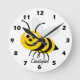 This bee design wall clock is a timekeeping device designed to hang on a wall, serving as both a functional tool and a decorative focal point for a room. Made from acrylic and features a pre-installed backside hanging slot for easy hanging and a non-ticking design. You can customise this wall clock with any text of your choice. Should you require any help with customising then contact us through the link on this page. Bee design wall clock