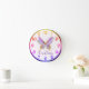 Relógio Redondo Bela Borboleta Roxa e Dourada