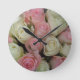 Relógio Redondo Belo Buquê de Flor de Rosas Brancas Rosa