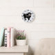 This bull design wall clock is a timekeeping device designed to hang on a wall, serving as both a functional tool and a decorative focal point for a room. Made from acrylic and features a pre-installed backside hanging slot for easy hanging and a non-ticking design. You can customise this wall clock with any text of your choice. Should you require any help with customising then contact us through the link on this page. Black bull design wall clock