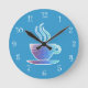 A parede da cozinha é recheada com lindos tons de azul e imagem de uma xícara fresca de café no rosto do relógio, em um design moderno design de relógio de decoração para sua cozinha, banheiro ou qualquer quarto na sua casa que você queira adicionar alguma comida e beber decoração relacionada.