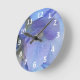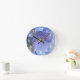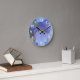 Lindos hipórdios azuis e periwinkle que dão graça a este relógio de parede. Estes tons pastéis leves são adoráveis e calmos num quarto ou quarto de criança. Os algarismos brancos claros em uma fonte sans serif são impressos acima da imagem da flor.
