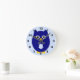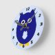 This owl design wall clock is a timekeeping device designed to hang on a wall, serving as both a functional tool and a decorative focal point for a room. Made from acrylic and features a pre-installed backside hanging slot for easy hanging and a non-ticking design. You can customise this wall clock with any text of your choice. Should you require any help with customising then contact us through the link on this page. Blue owl bird design wall clock