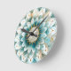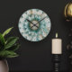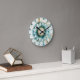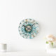 Relógio Redondo Blue Teal Dourado Floral Mandala