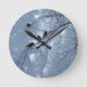 Uma queda de neve azul e bonito destaca os corvos estacionados em uma árvore neste atraente relógio de parede.