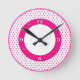 Relógio Redondo Bolinhas rosa-quente e brancas