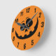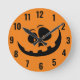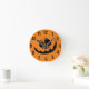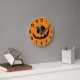 Este encantador relógio de rosto de Jack-o-lanterno é perfeito para adicionar um toque de Halloween festivo ao seu espaço. Apresentando um clássico rosto de abóbora feliz em preto e laranja com números negros ousados, ele combina design brincalhão com praticidade. Personalize a cor de fundo para corresponder ao seu tema do Dia das Bruxas. Feliz Halloween Pumpkin Face Jack O'Lantern Round Clock.