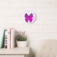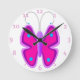 Relógio Redondo Borboleta cor-de-rosa