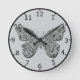 Relógio Redondo Borboleta Preta E Branca Elegante