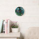 Relógio Redondo Borboletas de Paraíso Tropical em Blues,