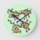 Monkey t-shirt do brilho, bolsas, canecas, cartões, etiquetas, chaveiro, travesseiros, jornais, mousepads, e outros roupa do macaco e características dos presentes quatro macacos marrons bonitos que balançam dos ramos de árvore e que comem bananas contra um céu do azul.