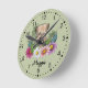 Relógio Redondo Camada De Pano De Pano Com Flores E Nome
