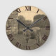 Um relógio numérico romano com uma foto da vaca de Jersey na fazenda. Retrato sépia de vaca bonito na fazenda, com silo e árvores ao fundo. Fotografado em Ohio rural.
