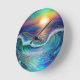Convide a calma do mar para dentro de sua casa com esta paisagem surreal, onde uma bela mistura de matizes azuis e ondas coloridas opais e jade encontram o calor de um pôr do sol sonhador.