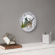 Este relógio redondo de inverno projetado para feriado apresenta um design de Natal maravilhoso. Se você gosta da vida selvagem, da natureza, e da estação de inverno você vai adorar este relógio de parede. O design foi criado de uma variedade de ilustrações do dominio público, então um quadro do floco de neve foi adicionado como borda.