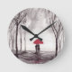 Relógio Redondo Casal de amor guarda-chuva vermelho rústico românt