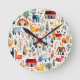 Relógio Redondo Casas vermelhas e casas Folha de Papel