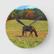 Relógio Redondo Cavalo vermelho marrom nas árvores do outono
