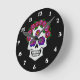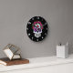 Este relógio de parede apresenta uma legal ilustração de um crânio com rosas. Perfeito para decorar sua casa para o Halloween, ou um presente para alguém que gosta de crânios de açúcar no estilo gótico com designs florais.