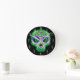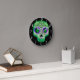 Relógio Redondo Caveira de Açúcar Preta com Brilho Verde e Roxo Ha