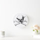 Relógio Redondo Caveira Preta e Branca e Ossos