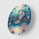 Uma vibrante pintura aquosa que representa um mundo subaquático encantador. Uma água-viva grande e translúcida, com um sino colorido em tons de rosa, roxo e azul flutuando graciosamente no centro, iluminada por raios de luz solar filtrando a superfície da água. Escolas de peixes pequenos e amarelos natações à sua volta, enquanto vários corais, algas e bolhas iridescentes povoam o fundo marinho arenoso. A impressão geral é de beleza aquática serena.