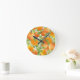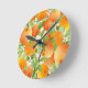 Design de cor de laranja, flores e verde vibrantes sobre fundo branco.