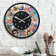 Relógio Redondo Colagem Personalizada de Fotos da Família em Preto