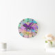 Relógio Redondo Colorida Dourada Roxo Unicórnio