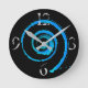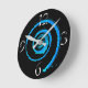 Relógio de parede com imagem abstrato de um fio azul claro em preto, na face do relógio. Personalizável.