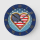 Esta bandeira americana em forma de coração faz o presente perfeito para qualquer patriota. Se quiser personalizá-la, pode redimensionar a imagem e até mesmo inserir a sua própria mensagem! Tente fazer seu design único personalizado!