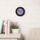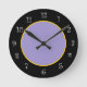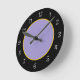 Os relógios das paredes da cozinha da na moda e da Trendy estão em amarelo púrpura e preto com marcas de números de rosto do relógio clássico que adicionam um toque de classe ao design.