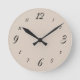 Este lindo, elegante e minimalista relógio de parede apresenta um fundo de cor creme ou bege claro.