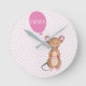 NewParkLane - Relógio de Parede, com um rato de madeira giro em aquarela, com um balão cor-de-rosa, para o seu nome ou outro texto pessoal, contra um fundo divertido, cor-de-rosa-bebê, com padrões de abstrato. Design para um quarto de meninas ou um berçário. Fácil de personalizar no Zazzle com seu próprio texto para um design personalizado. Todo estilo de texto, cores, tamanhos podem ser modificados para ajustado das suas necessidades. Veja esta coleção para itens correspondentes! Você tem desejos pessoais específicos de design? Sinta-se livre para me contactar!