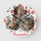 Celebrate the holidays and your furry family members with this adorable and festive Custom Photo Christmas Wall Clock. Designed especially for pet lovers, this clock features three customizable photo spots—perfect for showcasing your favorite cats, dogs, or other pets (and their human companions!). The white background is cheerfully decorated with a pattern of red and green pet paw prints, holly, golden sprinkles, and holiday ornaments. The phrase "Mewoy Christmas" adds a playful, loving touch beneath the photos. This charming clock is a wonderful piece of personalized holiday home decor or a heartfelt, unique Christmas gift for a devoted pet parent, ensuring they smile every time they check the time.