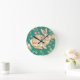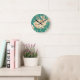 Relógio Redondo Cute Bunny Floral Teal Pattern