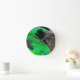 Relógio Redondo Damselfly azul em uma folha verde