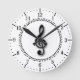 Neste design simples, preto e branco, o clef de triplo (igualmente conhecido como o clef de g) é cercado por oitavas notas em um teste padrão circular. Ideal para o coro, o coro, e a banda. Seja um grande presente para um diretor, um compositor, um accompanist, ou um pianista. O uso personaliza o botão para adicionar nomes/mensagem a este design, muda sua posição, ou fá-la sob medida.