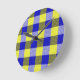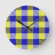Relógio Redondo Design de Verificação de Gingham Amarelo Azul
