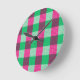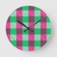 Relógio Redondo Design de Verificação de Gingham Verde Rosa