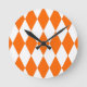 Relógio Redondo Design de Verificadores de Ouros Branco Laranja