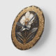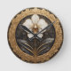 Uma ilustração luxuosa de uma flor de orquídea ouro, feita artisticamente numa estrutura circular ornamentado. Simbolizando elegância e refinamento, essa composição apresenta detalhes florais complexos e magnificência artística.