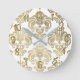 Relógio Redondo Dourado Glam & Damasco Branco Moderno Personalizad
